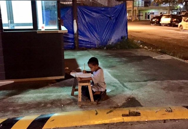 Correio Braziliense – Depois que a foto de um garoto de 9 anos estudando no meio da rua viralizou na internet, a vida da família do jovem mudou drasticamente. O menino conseguiu uma bolsa escolar do governo filipino e a mãe vai receber ajuda para abrir o próprio negócio. A foto em questão foi postada nas redes sociais pela estudante de medicina Joyce Gilos, e mostra o menino ajoelhado no chão, no meio da noite, fazendo a lição de casa em cima de uma banqueta de madeira improvisada, sob a luz da lanchonete em que a mãe, Christina Espinosa, trabalha.