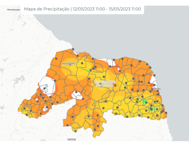 Após um período de veranico, fenômeno que interrompe a continuidade de chuvas durante a estação chuvosa, o Sistema de Monitoramento da Empresa de Pesquisa Agropecuária do Rio Grande do Norte, (Emparn) registrou chuvas em todas as regiões do estado durante o final de semana. Os maiores acumulados, entre às 7h da sexta-feira (12) e o mesmo horário desta segunda-feira (15), ocorreram nos municípios de Lagoa Salgada (Agreste Potiguar), 71,6mm; Montanhas (Leste Potiguar), 68mm e Carnaubais (Oeste Potiguar), 60,8mm.